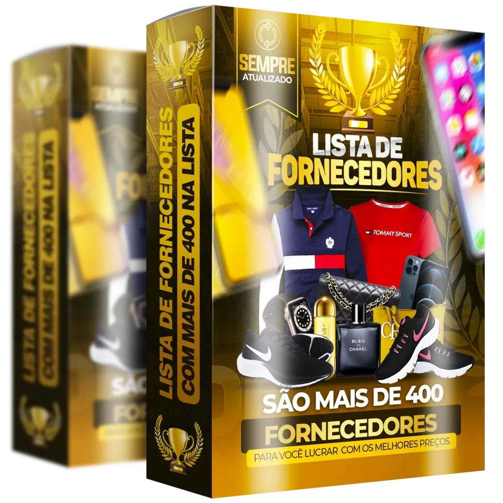 Na lista de fornecedores você terá acesso a mais de 300 fornecedores dos mais diversos tipos de PRODUTOS. Então você pode escolher trabalhar apenas com um segmento ou comprar um pouco de cada tipo para revender.